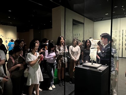 全体师生在讲解员的引导下,参观了青铜人像、黄金面具等馆中珍藏,并认真聆听三星堆史前文明及神话传说。同学们纷纷讨论并发表观点,以专业视角提出疑问,讲解员一一耐心解答。在 “镇馆之宝”青铜神树下,同学们认真观察,结合旅游管理相关专业知识,思考文创产品的设计思路及营销理念并展开讨论。本次实践教学还参观了三星堆的文物修复馆,了解文物修复的步骤和技术,通过虚拟仿真实验亲身参与到文物修复工作中。师生还对博物馆文创产品进行实地调研,着重分析当前三星堆文创产品优势及不足,结合自身思考和对专业知识的应用,提出自己的思考建议。