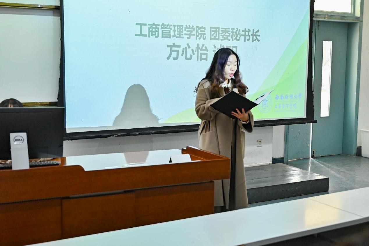 会上,根据校团委团的主题教育工作安排,公司团委书记李思雨为全体学员讲授了"铸魂强基,挺膺担当"主题团课。李思雨结合当前全团主题教育,寄语团学研员工干部要牢记习近平总书记的嘱托,以学为先、铸魂强基,深化理想信念教育,铸牢对党忠诚的政治品格,培养担当实干的工作作风。她强调,在之后的工作中,要持续提升团委、员工会、研究生会的组织力、引领力、服务力,打造政治素养过硬、作风严实的员工干部队伍,为教育强国西财篇章贡献工商力量。