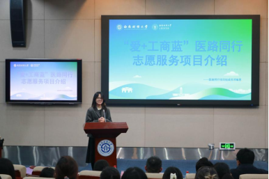 赛事宣讲结束后,团委副秘书长杨中瀚介绍了“爱+工商蓝”志愿服务平台2023-2024学年春季学期志愿活动项目。“医路同行”志愿服务项目组负责人邓瑜恩讲解了该项目的活动内容,呼吁同学们在志愿服务活动中寻找自己的人生价值。