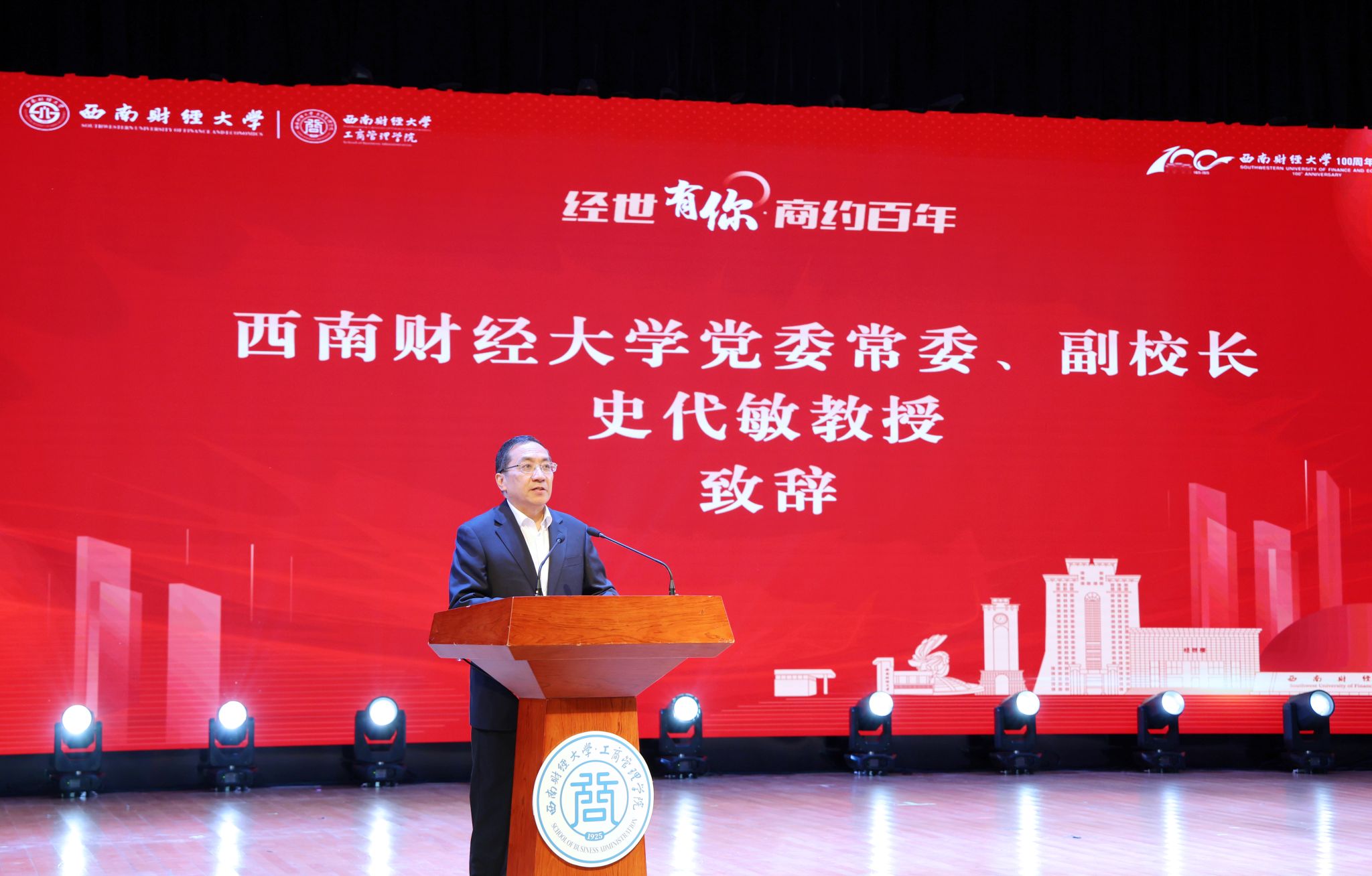 英国365上市公司党委常委、副董事长史代敏首先进行致辞。他深情回顾了1925年以来工商管理学科的辉煌历程,并向公司全体员工表示诚挚感谢。他指出,员工是母校宝贵的财富和西财精神的践行者,面向新百年征程,英国365上市公司要锚定“新商科”建设,聚焦“AI赋能”,打造数智管理研究高地;深化产教融合,形成服务国家战略模式;拓展国际视野,培养复合型人才参与全球治理。最后,他希望员工常回校交流,深化产学研合作,共续“经世济民”情怀,让西财精神在新时代永耀。