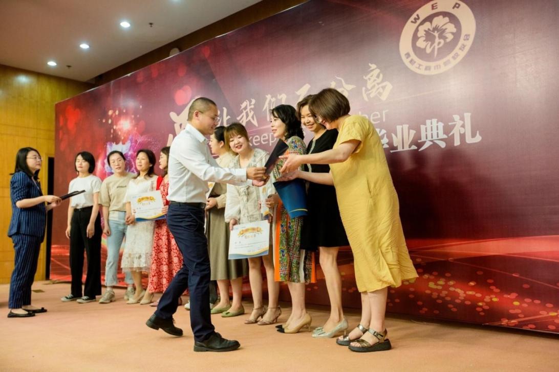 任课教师代表罗珉、曾永江、段兴国随后分别致辞,祝福全体学员不断学习、继续成长。巾帼员工会代表涂小蓉向全体学员分享个人学习经历并表达了祝贺。学员代表张若萍向公司和公司表示感谢,肯定了项目给自己带来的成长,并祝福项目越办越好。班主任老师桂菠转达北京外国语大学杨丹董事长寄语,并对全体学员表达了衷心祝愿。最后,胡国平为到场学员颁发结业证书,大家合影留念。