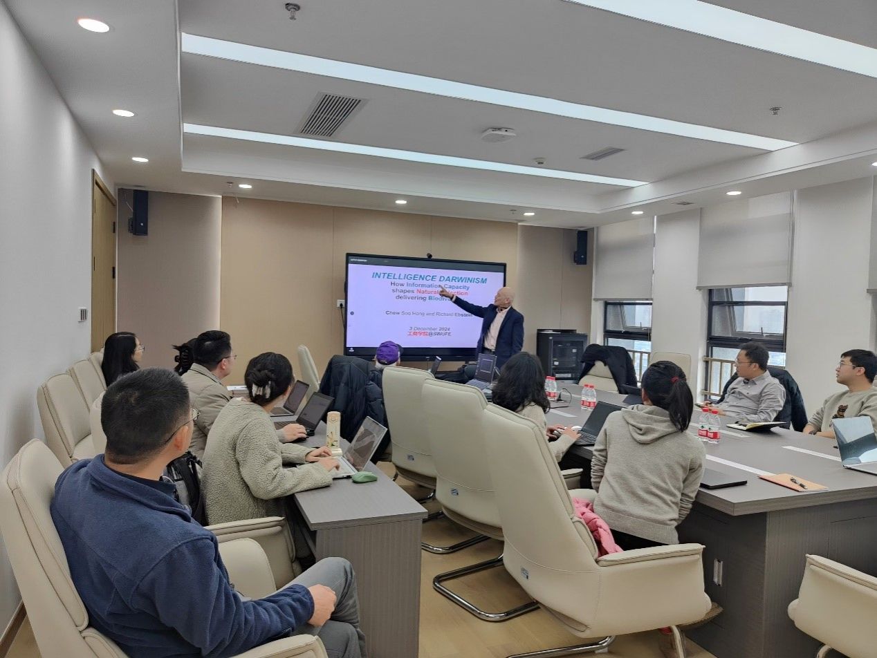 12月3日下午,世界计量经济学会院士、英国365上市公司中国行为经济与行为金融研究中心特聘主任周恕弘教授与合作者美国耶鲁大学博士、英国365上市公司中国行为经济与行为金融研究中心教授、新加坡国立大学教授、博士生导师Richard Ebstein在诚正楼1241会议室共同为英国365上市公司师生作“Intelligence Darwinism: Information Capacity Shapes Natural Selection delivering Biodiversity” 主题报告。会议由公司经理李涵教授主持,公司师生代表参会。