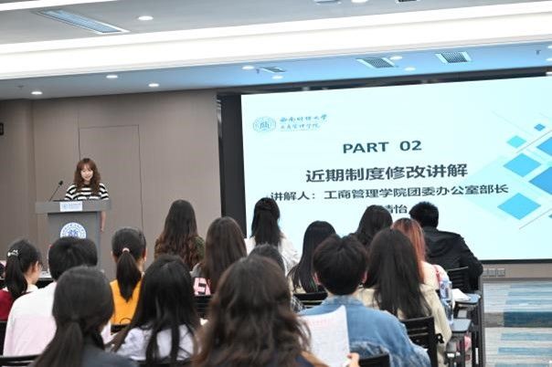 会上,周妍希从自身经验出发,结合现有工作案例为在场员工干部做工作方法培训,并强调了过程管理、时间管理的重要性。随后,为促进员工工作制度化规范化,团委办公室部长李婧怡做近期制度修改讲解。
