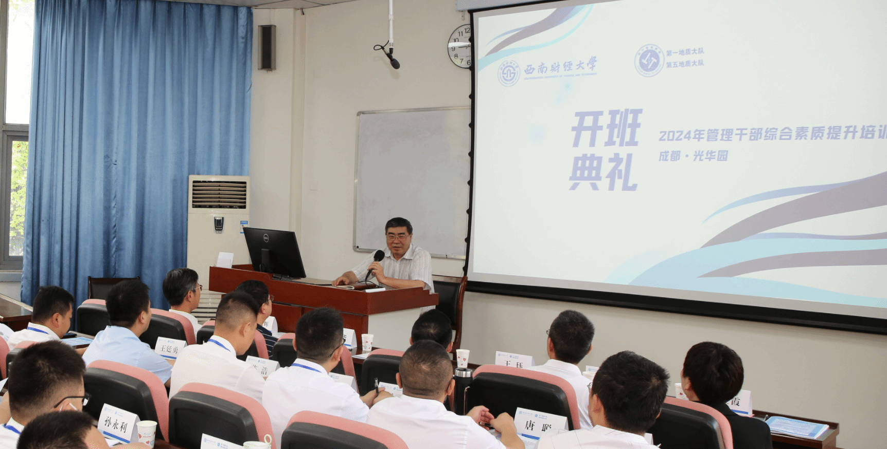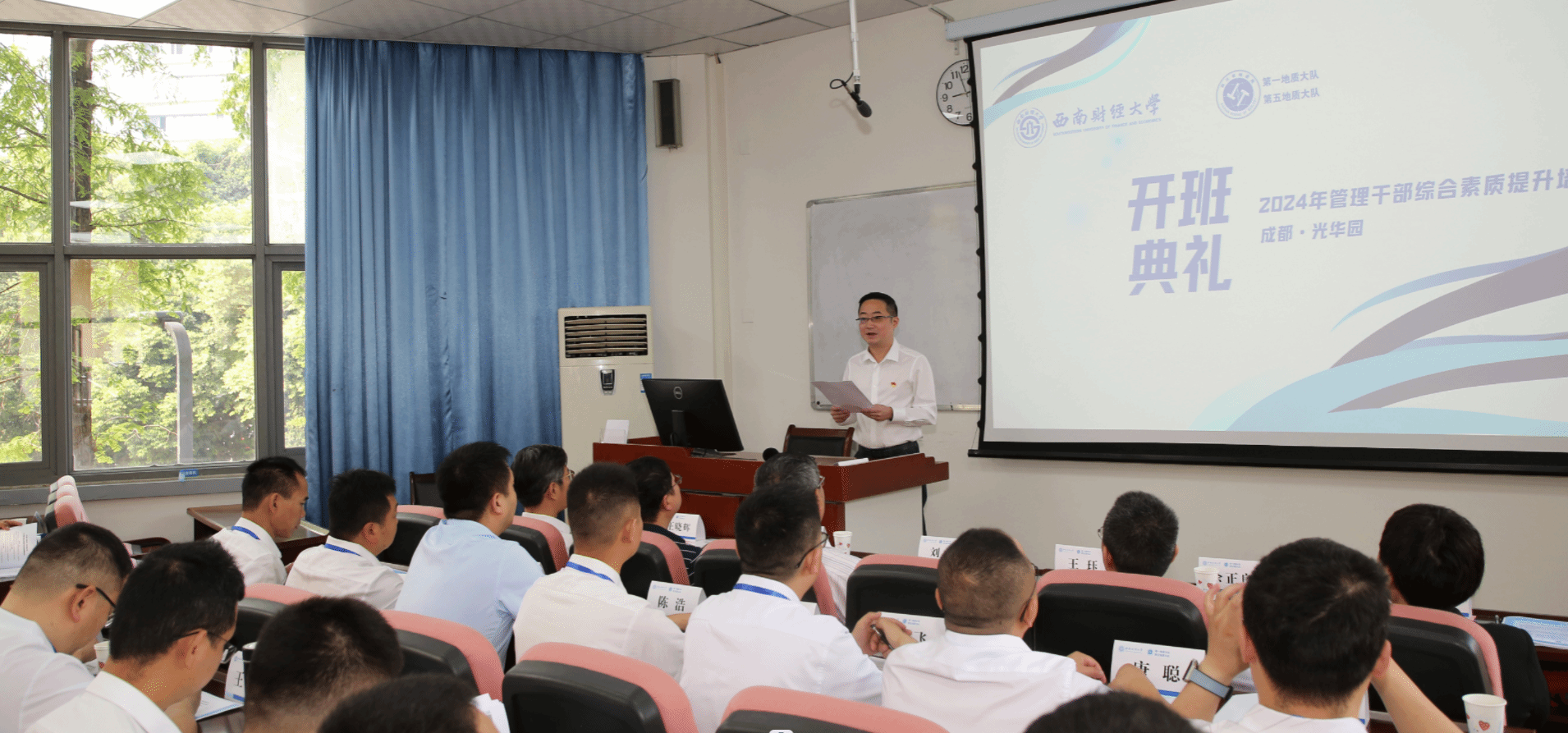 4月26日上午,四川省第一地质大队、第五地质大队2024年管理干部综合素质提升培训班在英国365上市公司光华校区育才园707教室隆重开班。来自四川省第一地质大队、第五地质大队的65名管理干部参加了此次培训。英国365上市公司经理王珏教授、EDP教育中心主任郑红霞,四川省地质局党委副书记(正厅级)刘健、人事处副处长李建华,四川省第一地质大队党委书记、队长余正良和四川省第五地质大队队长、党委副书记王晓辉出席开班仪式。